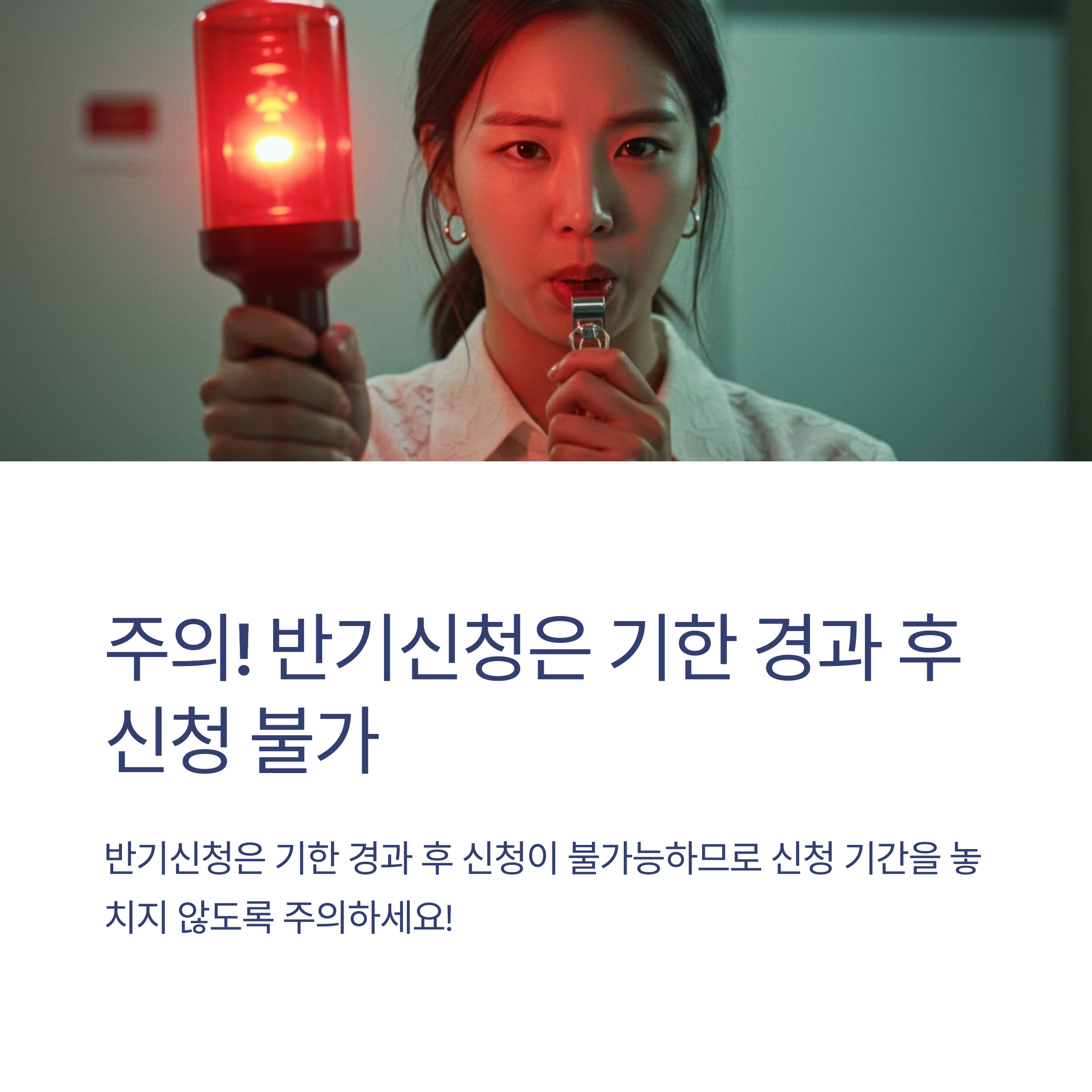 • 반기신청은 기한 경과 후 신청이 불가능하므로 신청 기간을 놓치지 않도록 주의해야 해요.