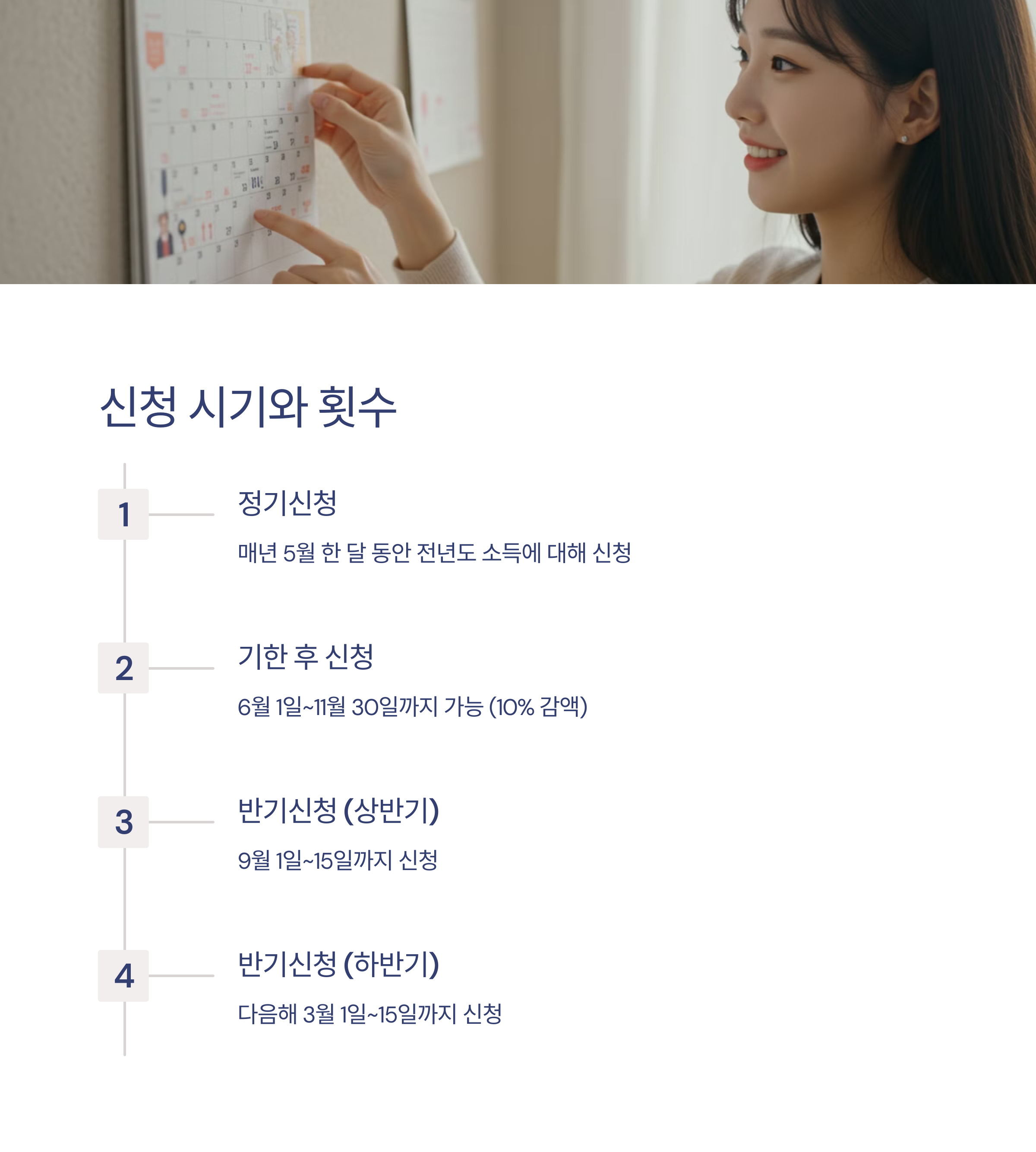 - 반기신청은 기한 경과 후 신청이 불가능하므로 신청 기간을 엄수해야 합니다.