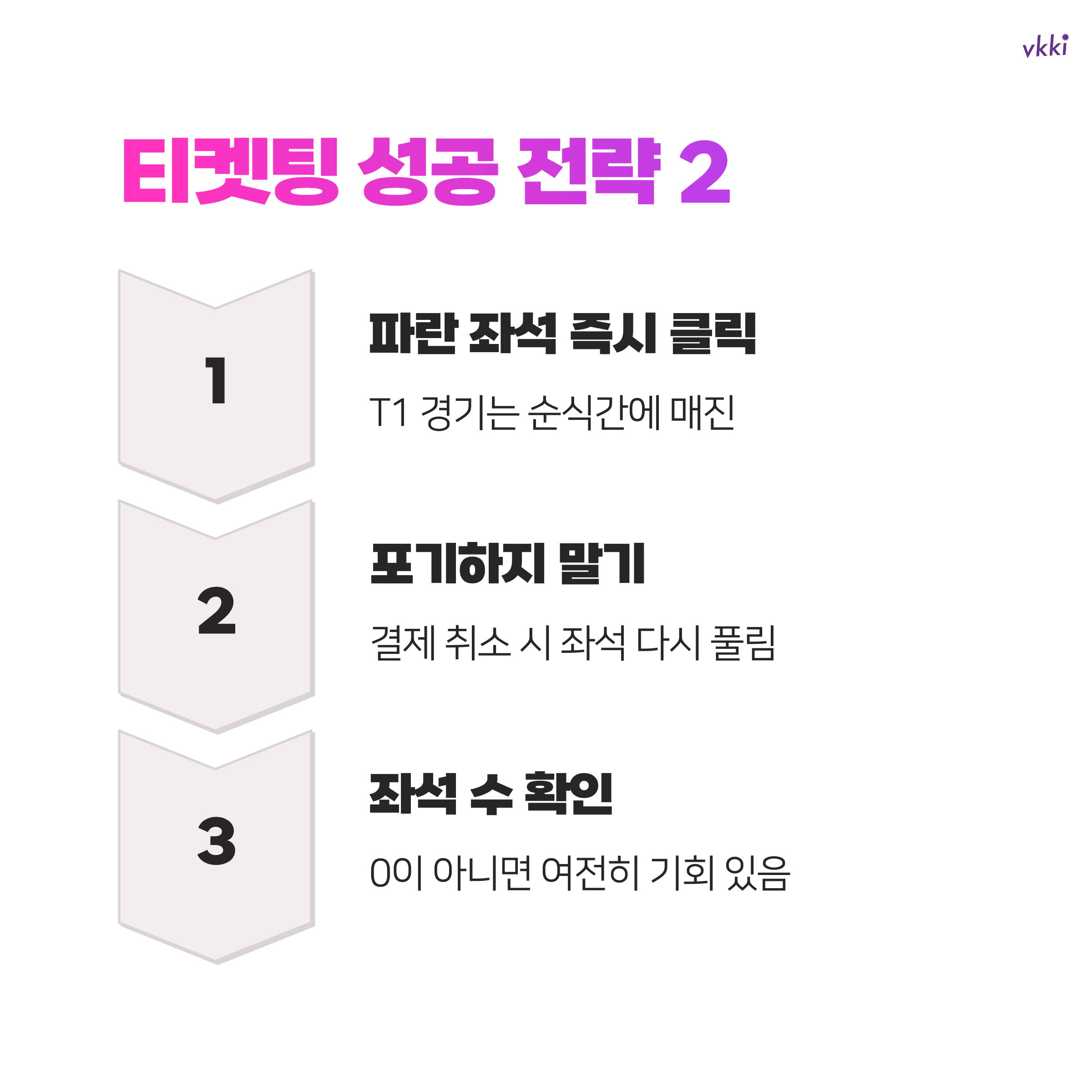 인기가 높은 경기일수록 예매가 어렵기 때문에, 다른 팀 경기로 연습 후 도전하거나, 결승전 외의 경기를 노리는 것도 방법입니다.